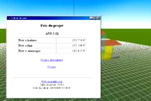 INFORMATIQUE En complément du procédé constructif, un ensemble d’outils informatiques a été mis au point. L’objectif principal de ces différents programmes est d’optimiser la phase conception dans l’optique d’assurer la qualité finale des constructions, la rapidité de mise en oeuvre, la maîtrise des coûts (différence entre le prix annoncé au client avant les travaux et le prix à payer à la livraison ne dépassant pas 5%). Deux programmes composent principalement cette suite de logiciels :